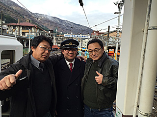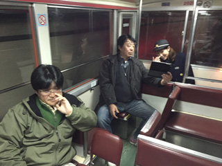 我々が乗ったリラックス客車は、最後尾車両だった。 最後尾には車掌さんも乗っている。 車掌さんの名前は「結城さん」と言います。 騒がしい田舎者ですが、ヨロシク! |