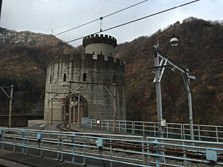 黒部川第二発電所(設計:山口文象) 1936年竣工(79年前)当時の最先端デザインとの事だ。 電車を降りて見に行きたいが、最寄りの駅に止まらない。 最寄りの駅(猫又駅)は素通りなのだ。 |