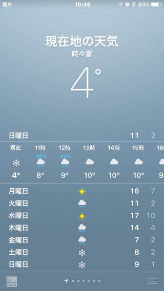 気温 4℃ です。 ※ au と SoftBank は圏外だが、docomo は圏内でした。 |