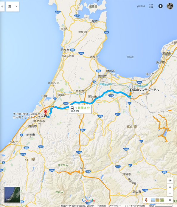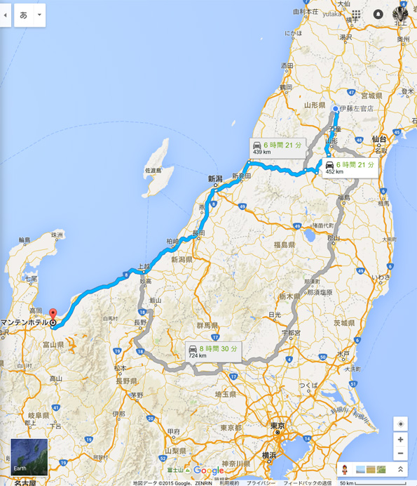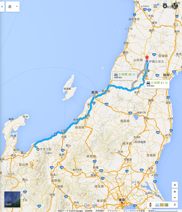 我が家から山形に飲みに行くのに 1時間、仙台に飲みに行くのに 1時間半、富山と金沢は意外と近い。
