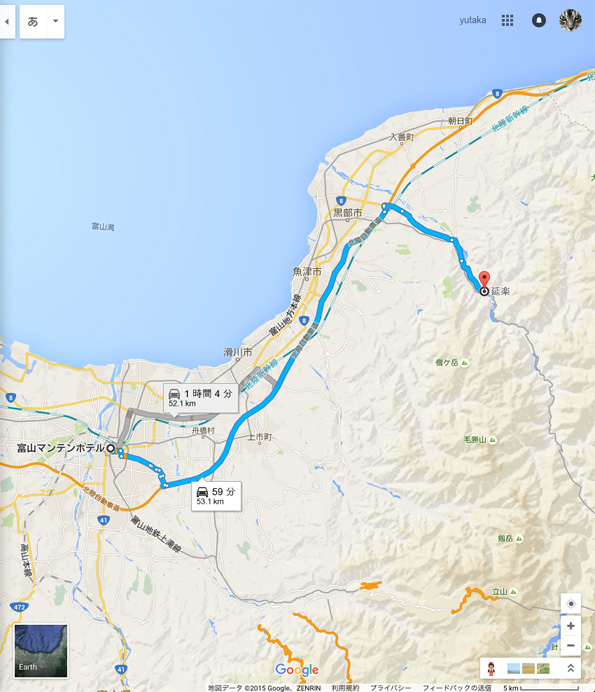 我が家から富山マンテンホテル(富山市)までは、452km(6時間21分)らしい・・・