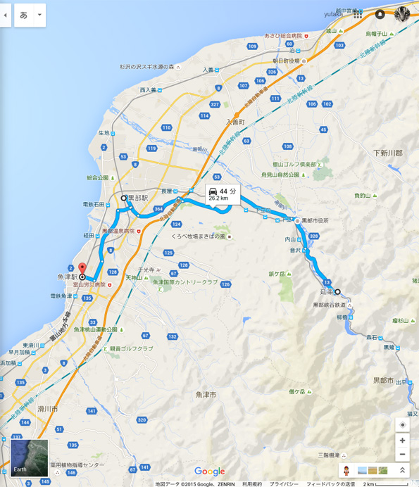 距離:26.2km 宇奈月温泉 |