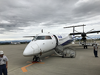 来る時のプロペラ機は「BOMBARDIER DHC-8-400」らしい。