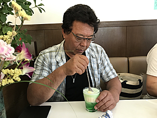 我々はビール(瓶ビール)だが、三浦さんだけクリームソーダです。