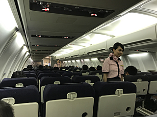 機内は 1列4席で天井も低い。観光バスみたいな感じ・・・