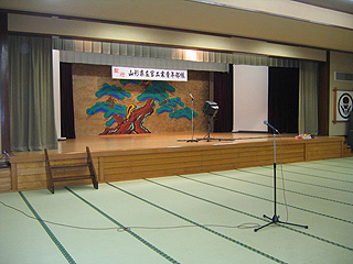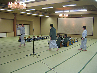 | 大宴会場なのに、人数はたったの 15名! ここで運動会でもやるのか?って感じだ。 |