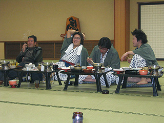 | PM 9:00 作戦会議(全員集合) ここで 15名が 3グループに分かれた。 Group 1:仙台襲撃班 Group 2:事務長とカラオケ行くぞ班 Group 3:朝までロックンロールするよ班 |