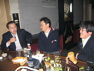 | PM 10:00 三次会(本間、伊藤、天野) 畑中・松本を置いて、我々は三次会へ・・・ 左官と建築に付いて熱く語る。 |