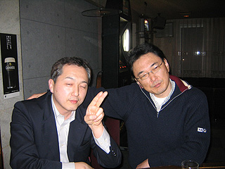 | PM 9:30 二次会(松本、畑中) 稲田亀吉商店の松本部長が登場! 材料屋さんは、懇親会には参加出来ない。 二次会からの参加と決まっている。 何故なら・・・ |