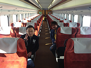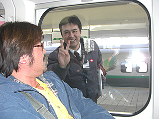 JR さくらんぼ東根駅を発車したら、三浦さんも乗っていた。 |