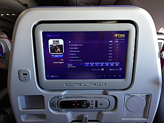 | タイ国際航空(エコノミークラス) ビジネスクラスには乗らない。我々はホテルのグレードの方を上げる。 映画やドラマも見れるし、音楽も聴ける。特に問題なし。 グラミーノミネートのアルバム「Some Nights / Fun.」があった。 |