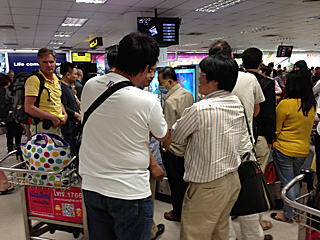 | スワンナプーム国際空港 入国手続き→乗継ぎ手続き→乗換え タイ(バンコク)には到着したが、国際線から国内線に乗換えがある。 |
