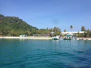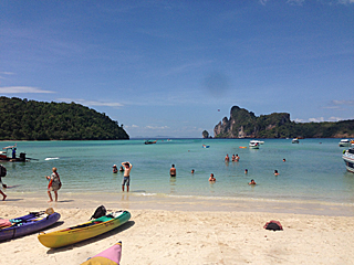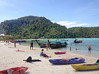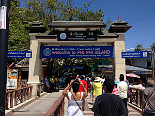 | welcome to PHI PHI ISLAND ピピ・ドン島に上陸しました。ここでダイビング班と合流します。 昼食会場に行ったら、ダイビング班は既に来ていた。 |