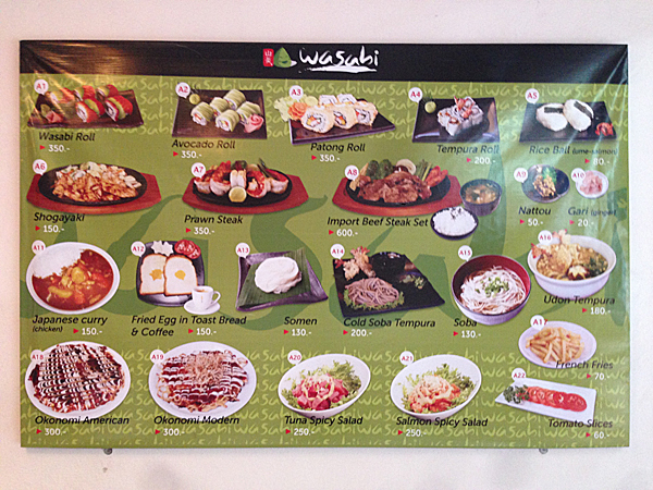 参考:WASABI の壁に貼ってあったメニューです。