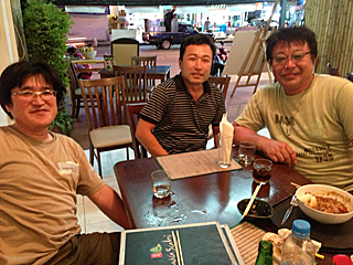 | ママさんは日本人が好きらしく、我々のテーブルに付いた。 この 5人全員の写真は、ママさんに撮って貰った。 5人全員で撮った写真は、これ一枚の様な気がする。 |