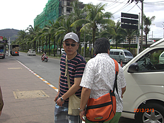 | プーケット到着! プーケットの現地ガイド(Mr. ポンちゃん)と合流 名前はポン何とかだったが、面倒なのでポンちゃんと呼ぶ事にした。 ポンちゃんは、旅行会社の他に不動産会社もやってるらしい。 腕にはロレックス、儲かってまんなあ。 |