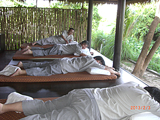 | ビーチでじっとしているだけだと直ぐに飽きる。 タイに来たら、本場のタイ古式マッサージをしないとダメでしょう。 と言う事で、ちょっと高級なタイ古式マッサージに行った。 |