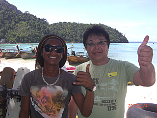 | 大類くんは、すっかりピピ島の人々とお友達に成ってます。 こんな所に毎日いたら、真っ黒にも成りますね。 |