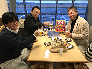 仙台空港にて いよいよ 2年振りのタイへ出発します。朝から乾杯! (チェックイン→国内線) 時間帯的に空港ラウンジ(カード会社ラウンジ)は開いてない。 |