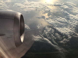 雲の上、雲の隙間から海が見えた。 | |
