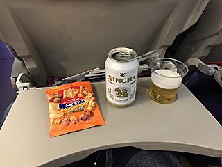 ドリンクサービス 早速、シンハビール(ビアシン)ですか、嬉しいですね。 |