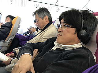 機内ではそれぞれの時間を過ごす。私は寝る・・・ | |