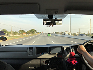 スワンナプーム国際空港から、チャーターバスで(高速道路で)パタヤーに南下します。
