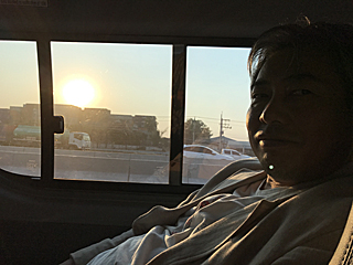 朝 3時起きです。 今回は仙台まで私が運転担当で、大類さん→天野さんと回ります。 |
