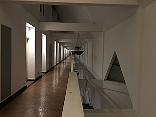 低層棟は、1フロアー何部屋あるんだ? ここは 4階だが、廊下の右側が 1階〜4階まで吹抜に成っている。 防火区画とか防煙区画とか、タイに基準は無いのだろうか? リゾート地で余計な事は考えない様にしよう。 |
