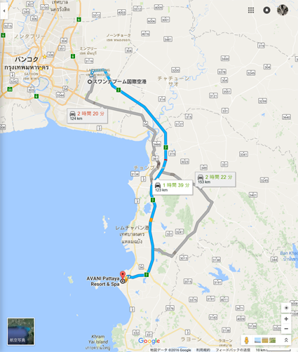 パタヤー:スワンナプーム国際空港から南へ 123km(1時間39分)