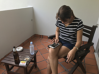 喉が渇いたので、部屋のベランダでビールを飲む。 |