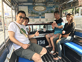 バンコクは「トゥクトゥク」だが、パタヤーは「ソンテオ」です。 バス代わり走っているが、タクシーとしても使える。 パタヤーの移動は、殆どソンテオをタクシーとして使っていた。 我々専用だし、行きたい所へ連れて行ってくれる。 行き先と値段交渉は、通訳のオンちゃん宜しく! |