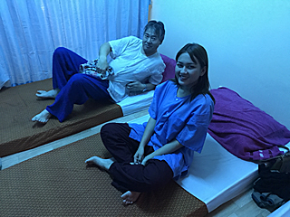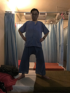 こんな格好に着替えてマッサージを受けます。 日本のツボグリグリマッサージと違って優しい。気持ちいい。 気持ち良くて、途中で寝てしまう。幸せマッサージです。 タイ古式マッサージは本来 90分ですが、60分で OK! 何故なら、これから毎日タイ古式マッサージを受けるからです。 タイに来たら、毎日マッサージするのが基本でしょう。 |