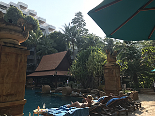 中庭プール(その2) 異国に来たんだなって感じがします。 前回、ここで日本人とは会いませんでしたが、今回は沢山いました。 日本人グループ(10人くらい)で来ていた感じです。 |