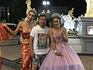 帰りに、綺麗なオカマと記念撮影(一人 100バーツ) オカマ一人にチップ 100バーツなので、この場合 200バーツです。 近寄るとデカイし、やっぱり男です。 因みに、ここの男気は大類さんでした。コップンカッ! |