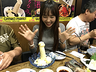 この娘がなかなか面白い。 後ろの壁のポスターを見て「CHINKO PARFET」を注文した。 ちんこパフェが来て、大喜びである。 どうやって食べるかは、ご想像にお任せする。 |