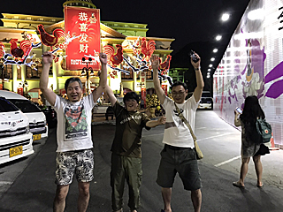 うえ〜い! コンパス会では、このポーズを「うえ〜い!ポーズ」と言う。 南国に来て、我々は頭がおかしく成った様だ。 知能が低下しているのは間違いない。 |