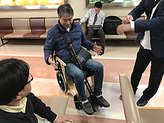 足の具合の悪い大類さんは、車椅子を持って行く事にした。