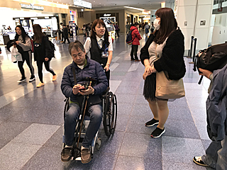 空港内と機内は JAL の車椅子を借りられる。