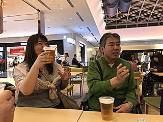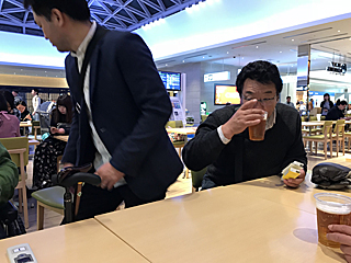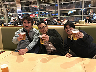 空港のレストランで、先ずは乾杯!