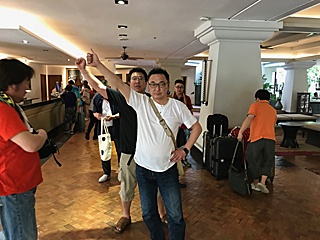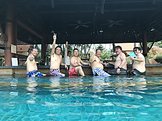 出発前に皆で記念撮影、行くぜ Thailand!