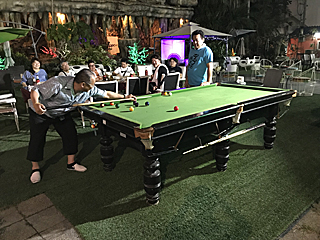 テーブルの隣にはビリヤード台もあった。