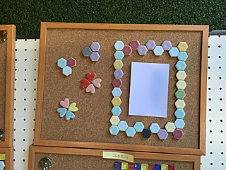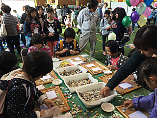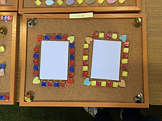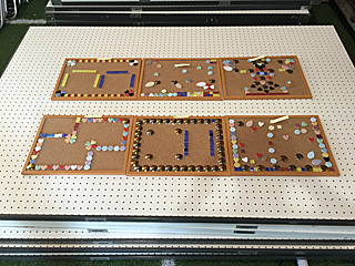 ボンドが乾く迄の、一時作品展示コーナー 1時間くらいで乾くので、帰りに取りに来て下さいね。 忘れずに!絶対に取りに来るんだぞ! 去年、何人か取りに来ない不届き者がいた。 |