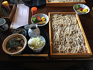 という訳で、我々は近所のお蕎麦屋さんへ 板そば(1.5人前)と鴨汁を注文した。 男気ジャンケンでは、私が勝たせて頂いた。ヨシャ! |