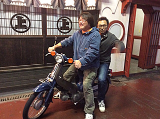 いい感じに酔って、バイクに跨がる二人 これは誰のバイクだ? 道端にあったバイクだ。 勝手に跨ってすいません。m(__)m 酔っ払ったコンパス会は、やりたい放題なのだよ。 |