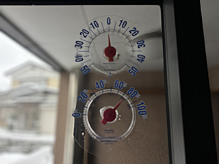 風除室で屋外環境(気温と湿度)のチェック 外気温:1℃ |