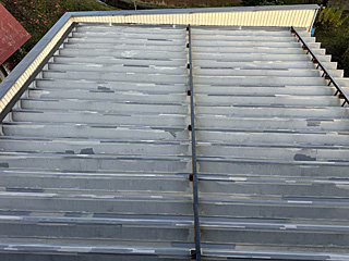 2年振りに、折版屋根のサビ止め塗装をしました。全体じゃありません、サビが出ている所だけ部分塗装です。