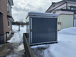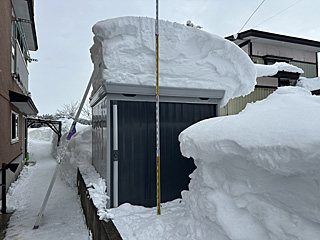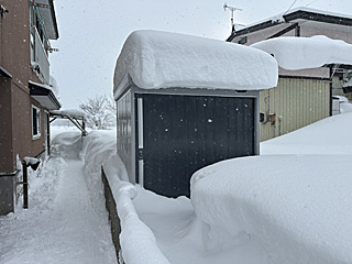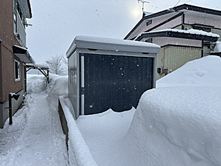 イナバ物置の写真を撮り忘れました。先々週、屋根の雪を下ろしたので、屋根に雪はありません。