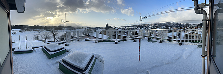 | 風が無いと、普通はこんな感じに雪が積もります。 今年の年賀状に使った写真ですね。 (撮影:2025年 2月7日) |