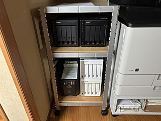 UPS 3 QNAP(4台)とルーター(2台)とスイッチングハブ、 |